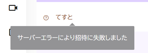 また、凍結中ユーザーに対し招待を行った場合も上記と同様のエラーメッセージが表示されます。