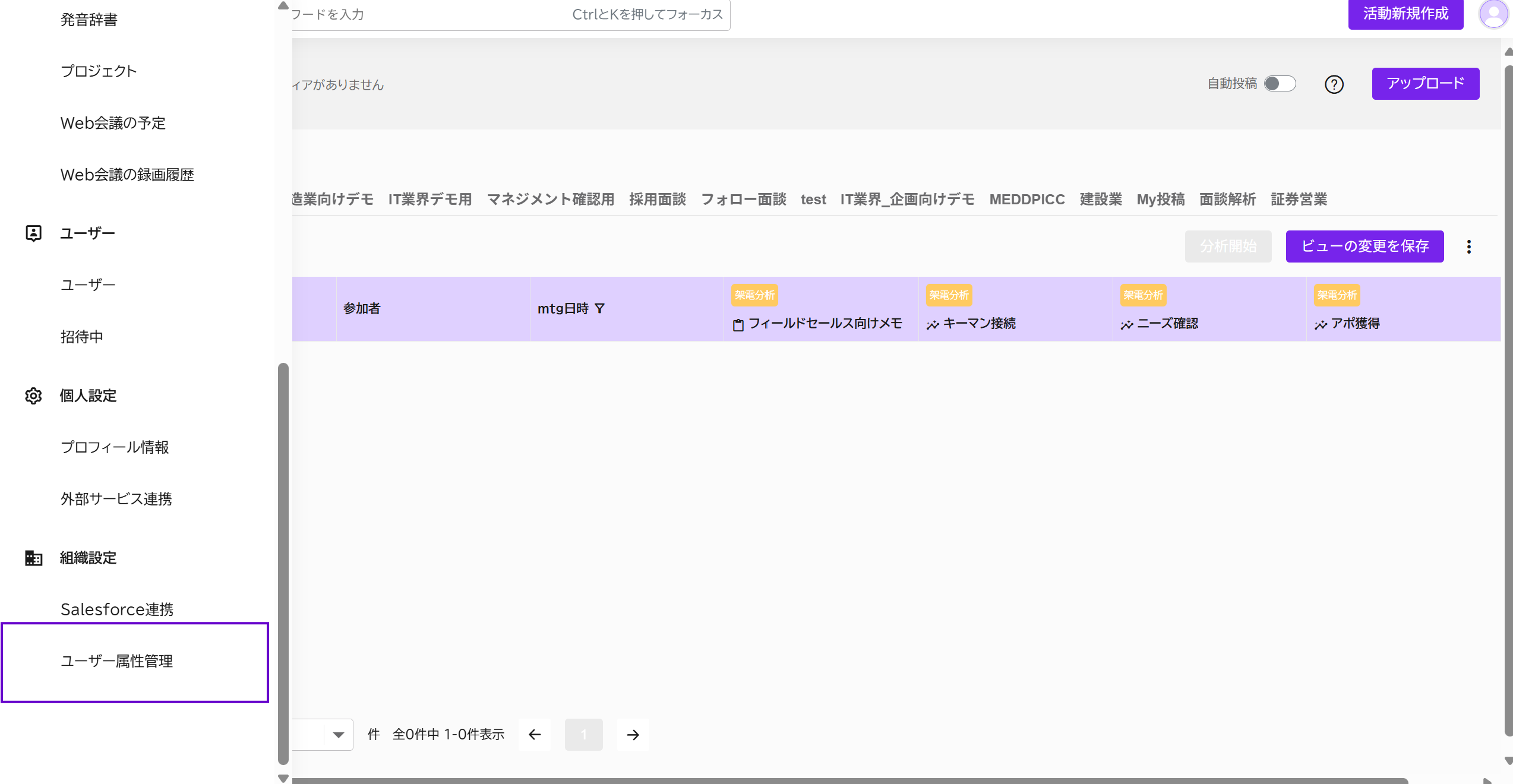 TOP画面左上の「≡メニュー」から「ユーザー属性管理」を選択します。