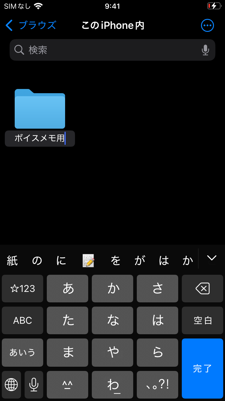 iOS標準のファイルアプリを起動して、ボイスメモを保存するためのフォルダを作成しましょう。