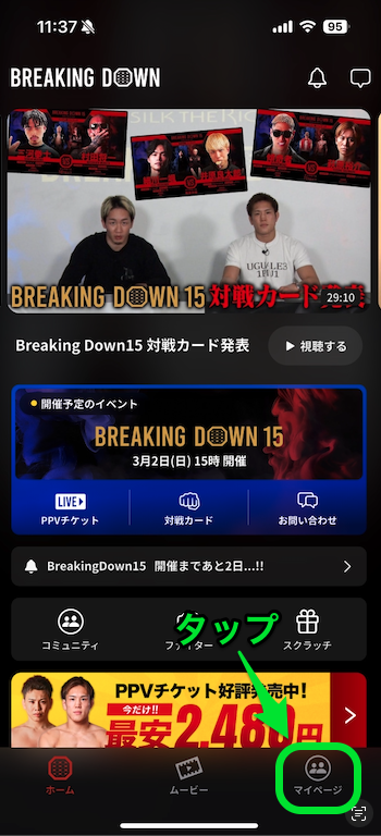 BreakingDown Clubアプリを開く。