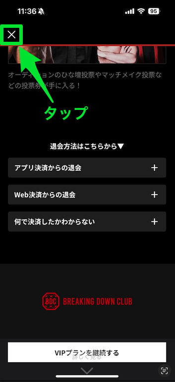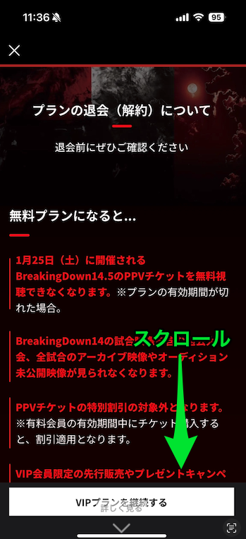更新日までは有料会員(VIPプラン)となりご利用いただけます。※確認方法(▼画像は、退会(解約)が完了している状態です。)
