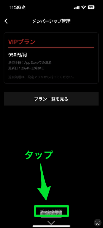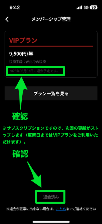 アプリ有料会員(VIPプラン)の退会方法がわからない