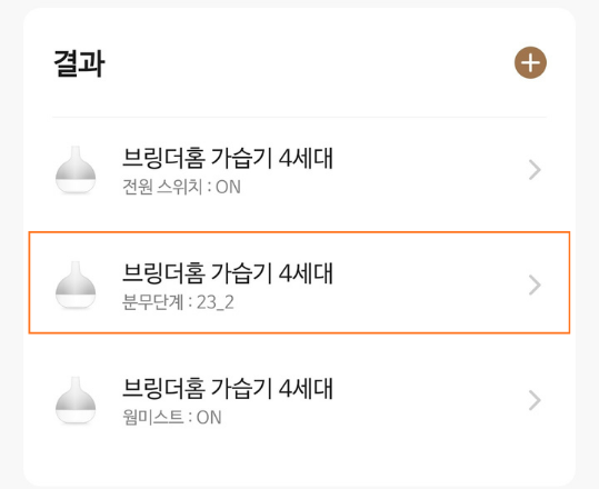 브링더홈 앱 홈 화면에서 우측 상단의 (+) → 장치 추가를 눌러 제품 연결 화면으로 이동해 주세요.