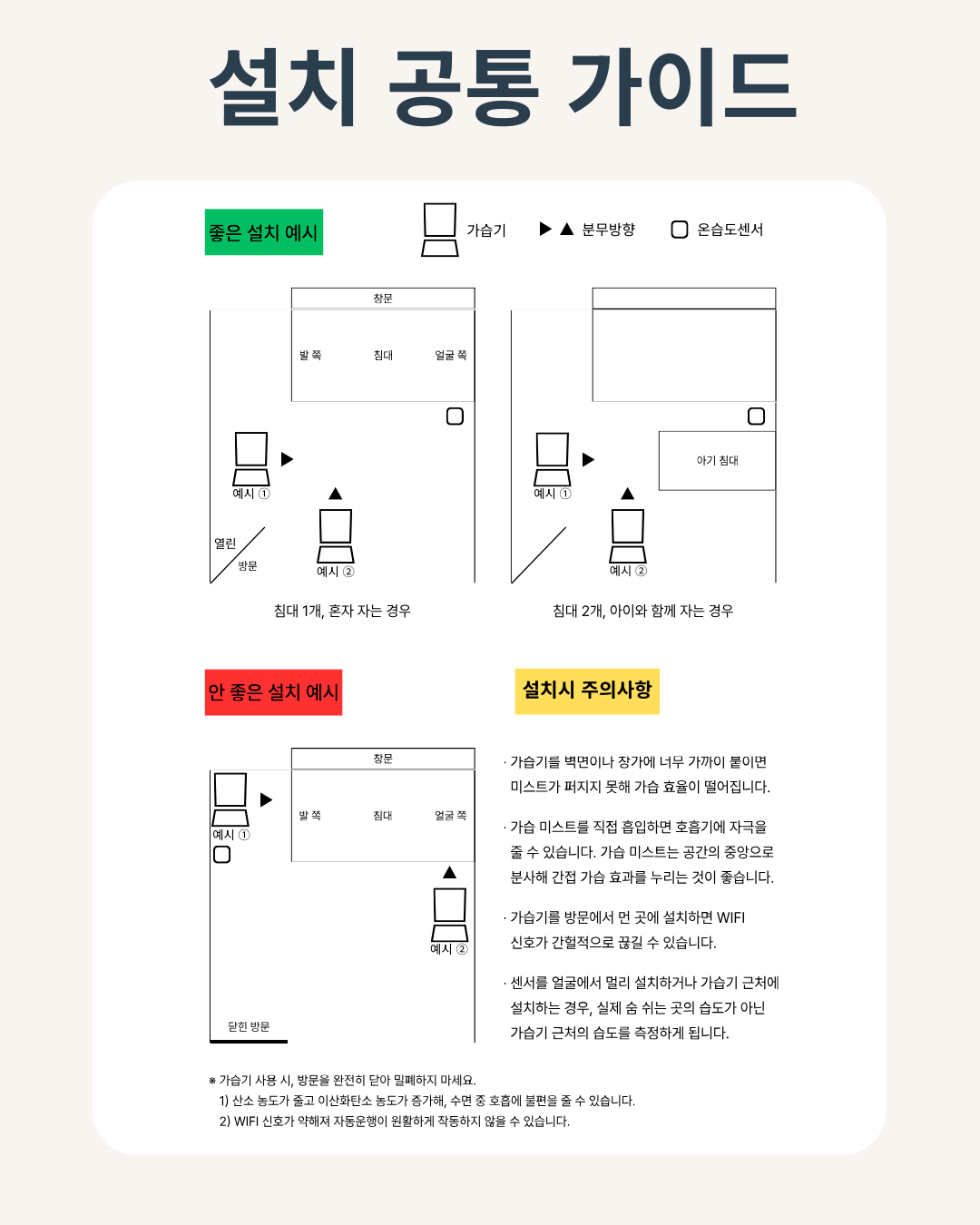 브링더홈 가습기 & 온습도센서의 설치 위치