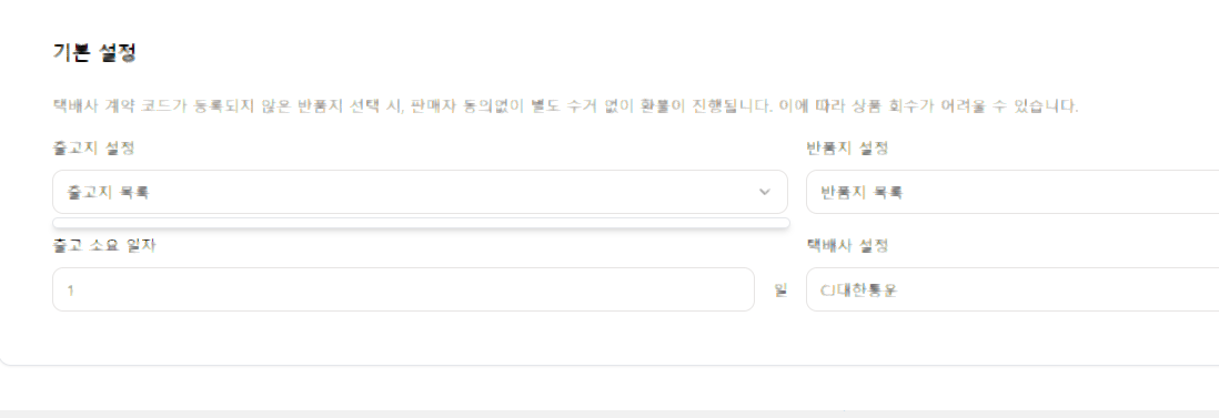 A 13. 출고지목록은 연동하기 클릭 후 선택해주시면 됩니다