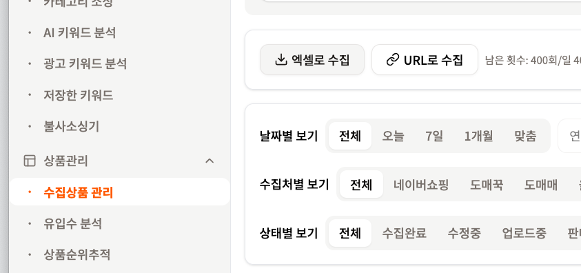 A 39. 추후에 개발예정입니다. 현재는 불사소싱기를 활용하여 수집만 가능합니다
