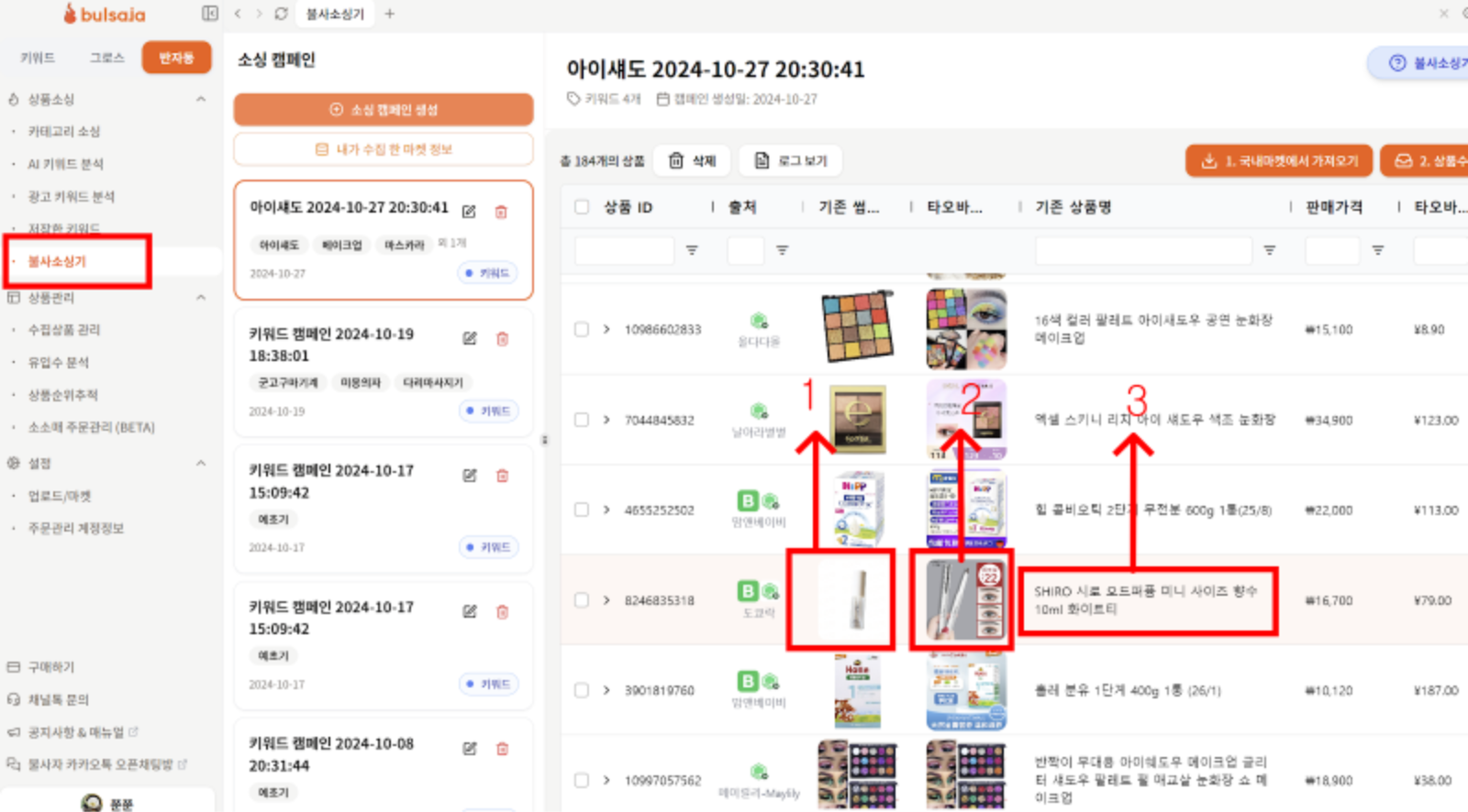 상품url로 지정한 데이터만 소싱하고싶다면 어떻게 해야할까요?