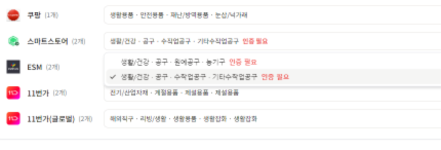 쿠팡과 11번가 수정하려는데 이미 수집되서 수정버튼 활성화가 안되서요