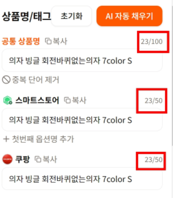 Q 77. 상품명/태그 AI자동채우기 기능이 안되는거 같아요