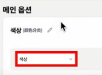 하단의 메인옵션에서 '색상'을 선택해주시고, 그 밑에 추가 옵션에서 '수량'을 선택해주세요.