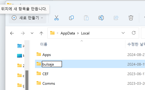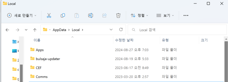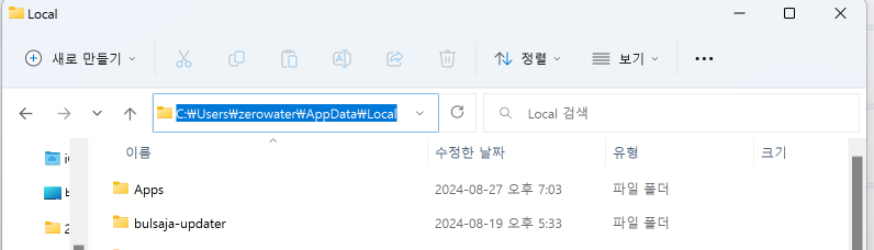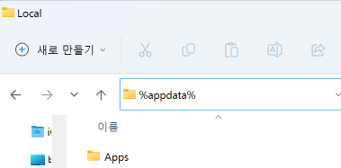 최종적인 위치는 C:\Users\[Admin]\AppData\Local 이 위치가 되어야합니다.