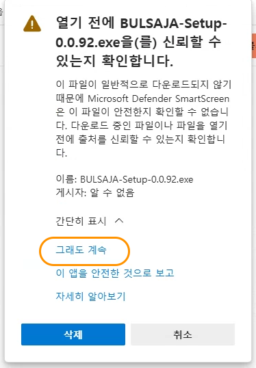그래도 계속 을 눌러서 다운로드해주세요