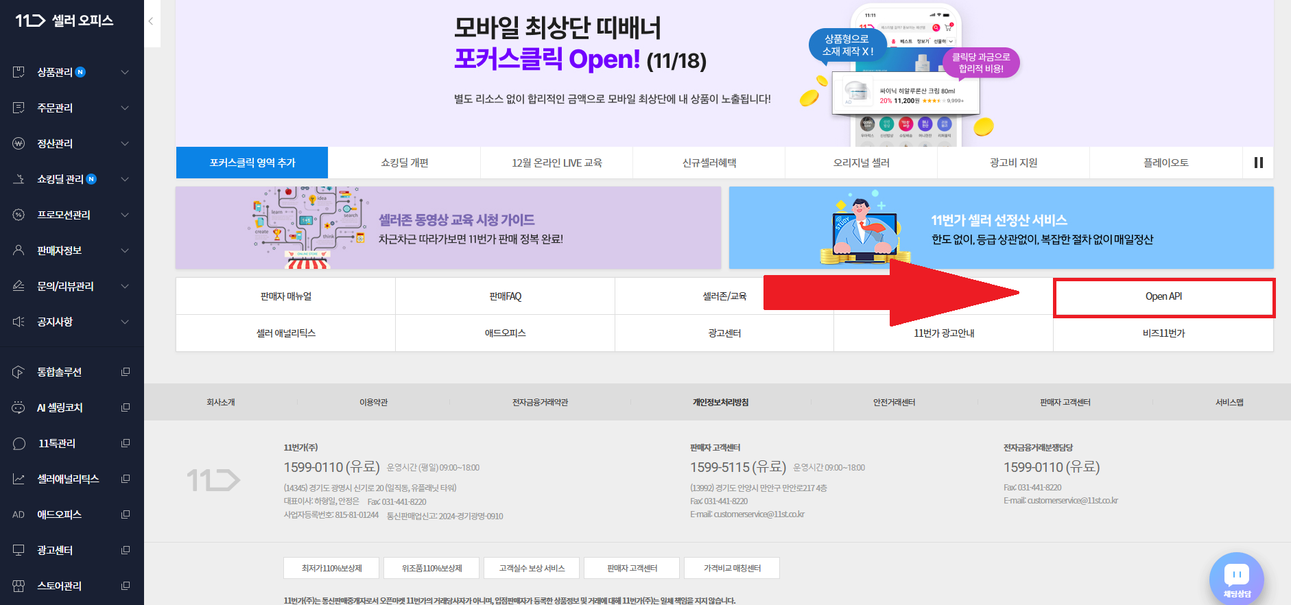 2. 11번가 셀러오피스 바로가기를 클릭해 주세요