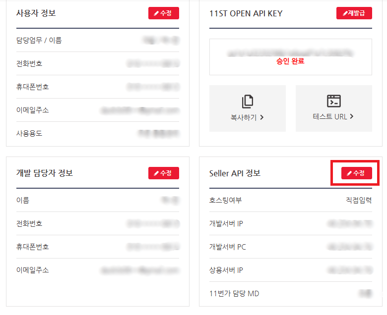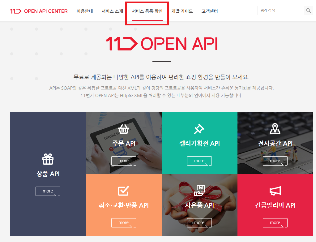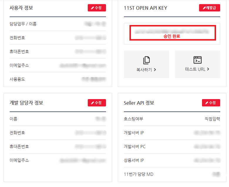5. 11ST OPEN API KEY 부분에 API KEY를 복사하여