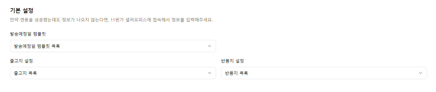 발송예정일 템플릿, 출고지 설정, 반품지 설정 칸을 채워주세요.
