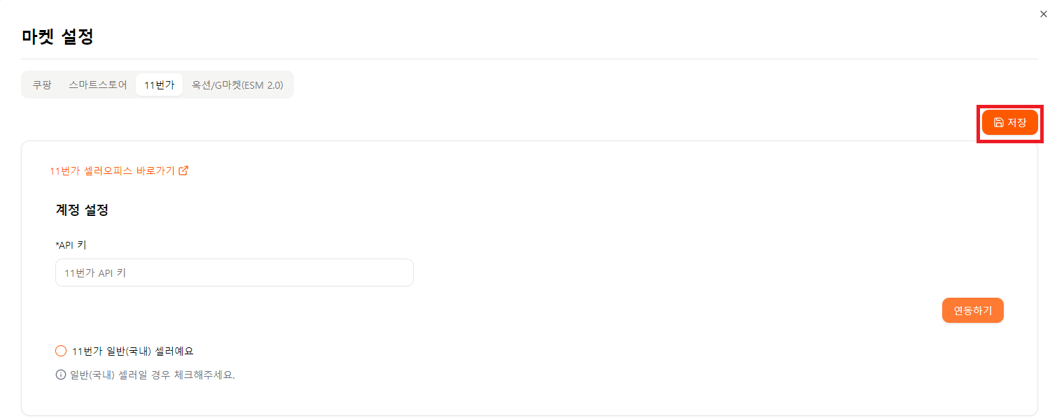 이때 국내 셀러라면 11번가 일반(국내) 셀러에요를 체크 해주세요.