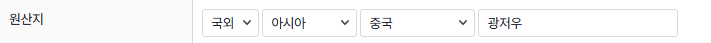 원산지 입력 방법은 아래 내용을 참고해 주세요.