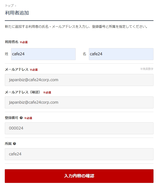- メールアドレス(確認)(메일 주소 확인용): japanbiz@cafe24corp.com