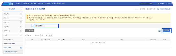 3. [사업자 번호 기재] → [조회] 메뉴 선택