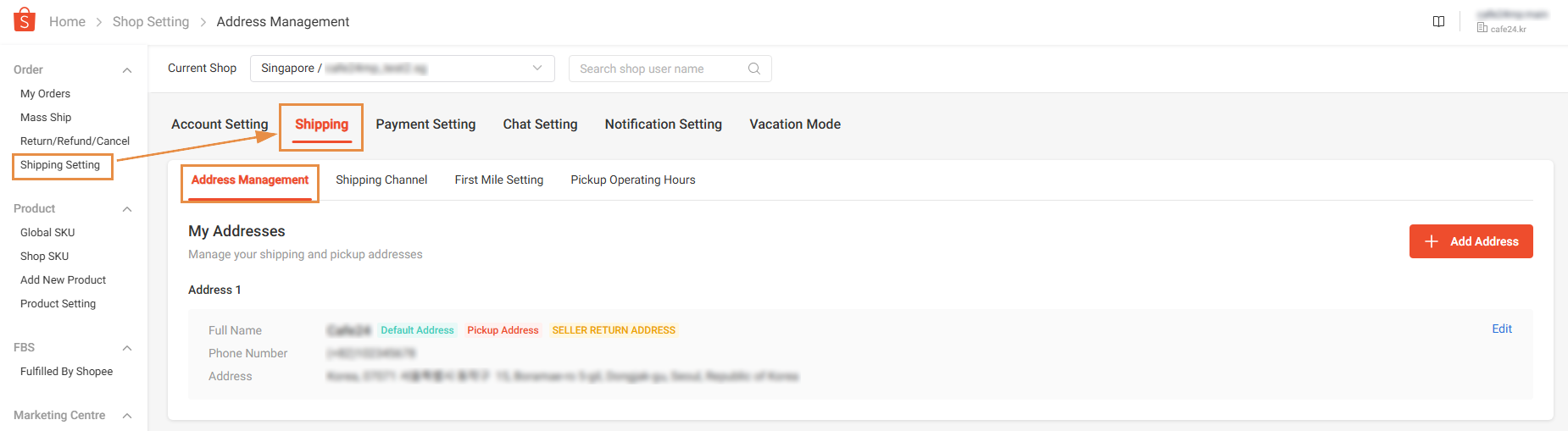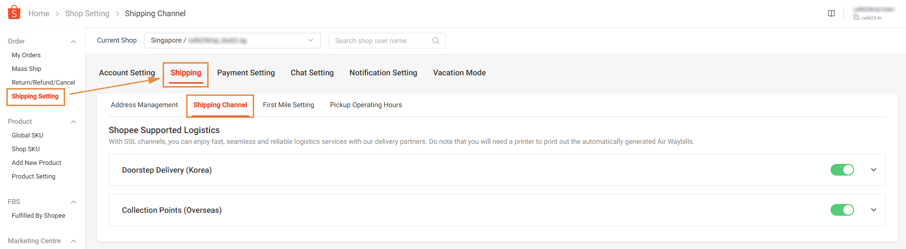 위 작업은 쇼피 글로벌과 연동된 영문몰을 기준으로 진행됩니다.