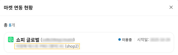 ※ 연동된 멀티몰은 카페24 PRO > 이용 현황 > 마켓 > 상세정보에서 확인하실 수 있습니다.