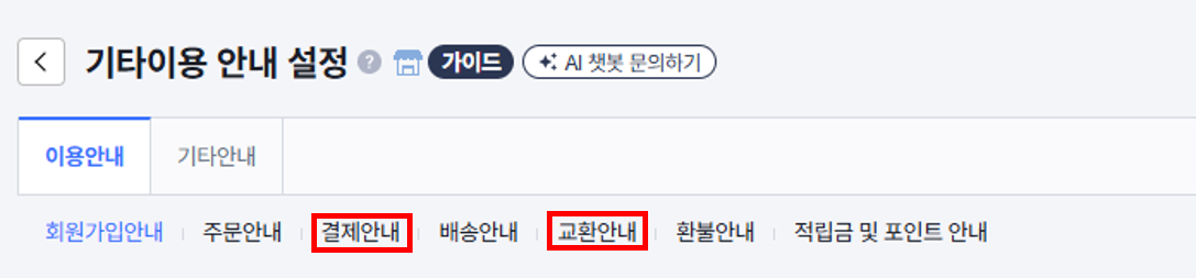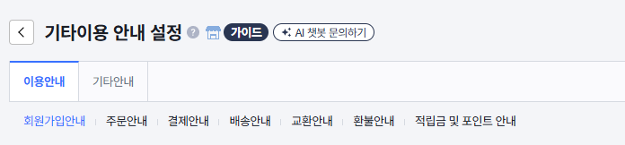 🧐 경로 : 쇼핑몰 설정 > 기본 설정 > 약관 · 정보 설정 > 기타이용 안내 설정 > 이용안내