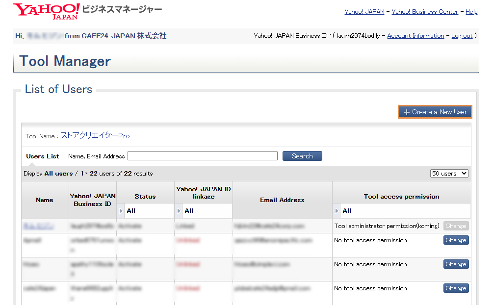 3️⃣ Tool Manager 화면에서 [Create a New User(새 사용자 생성)]을 클릭합니다.