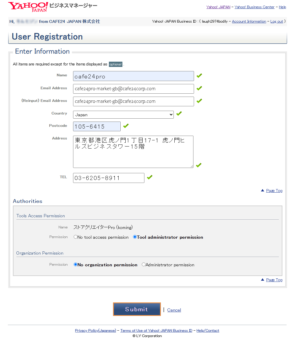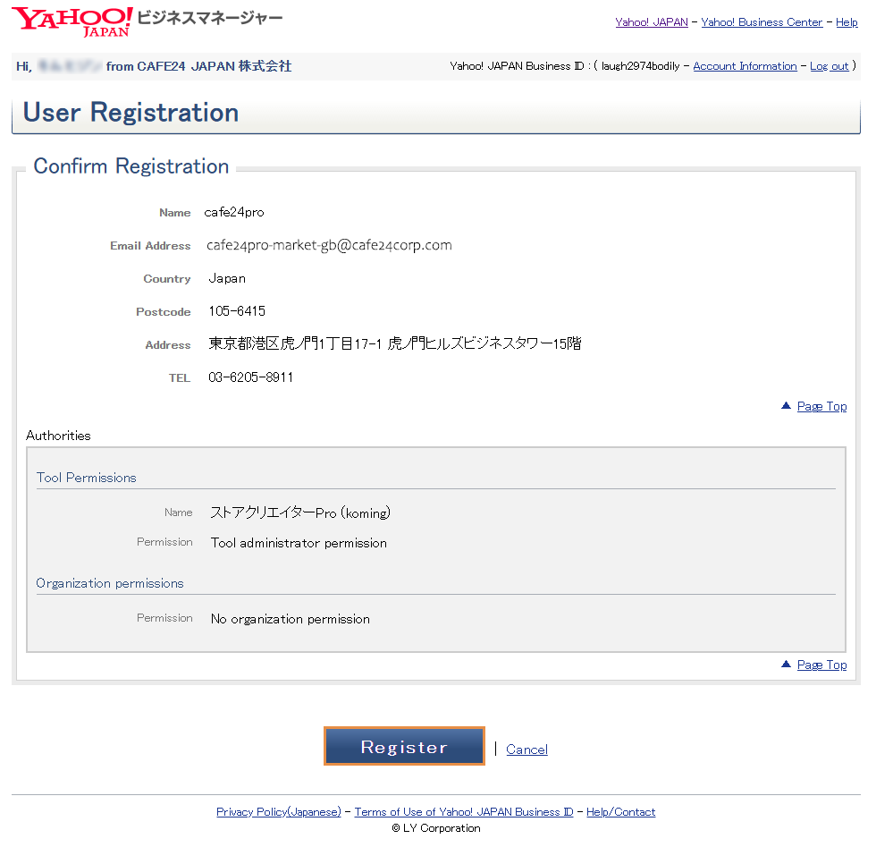 야후 쇼핑 계정 생성 시 일본 현지 법인이 필수 입니다.