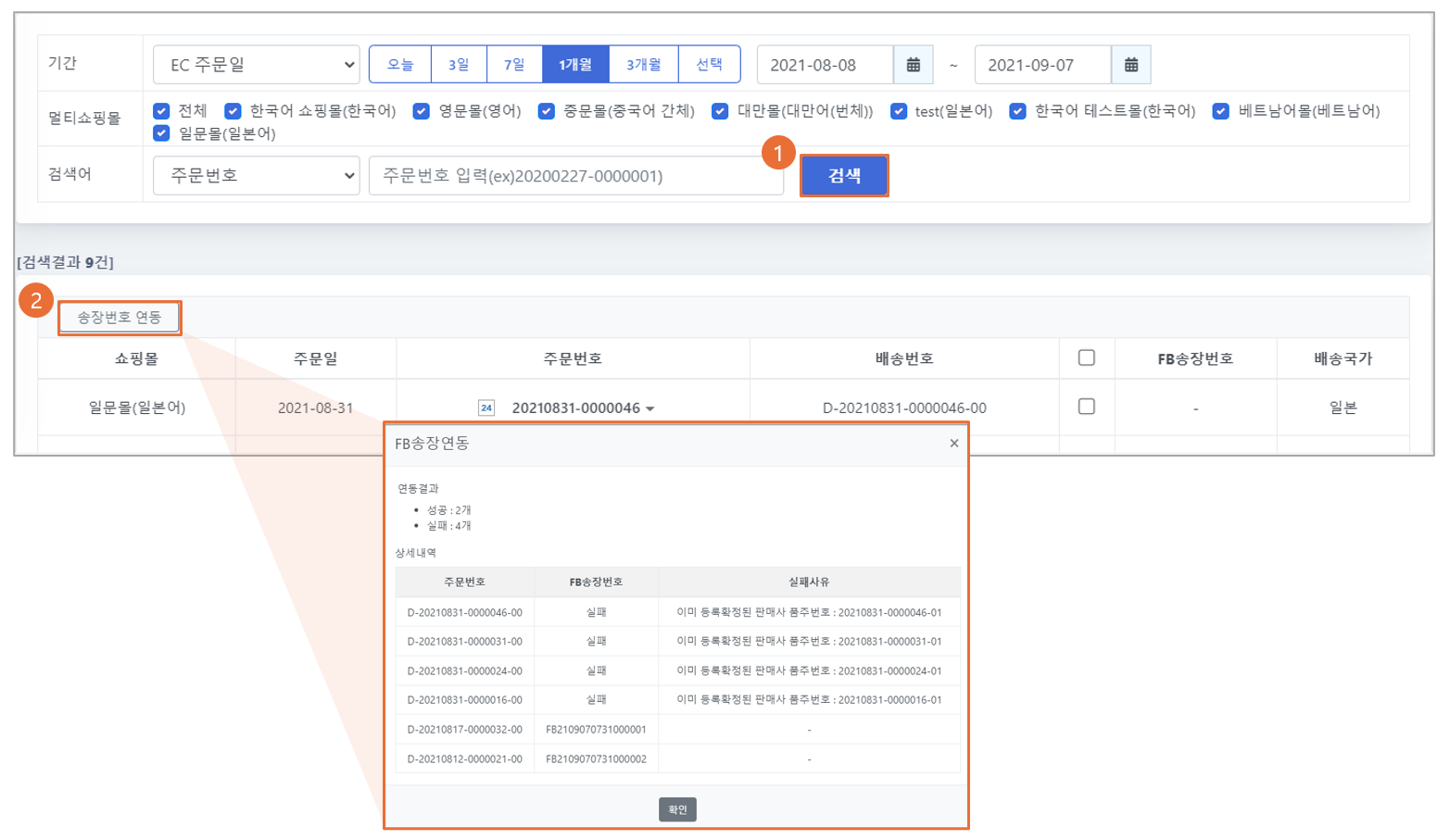 완료 | FB송장번호 생성 확인 |