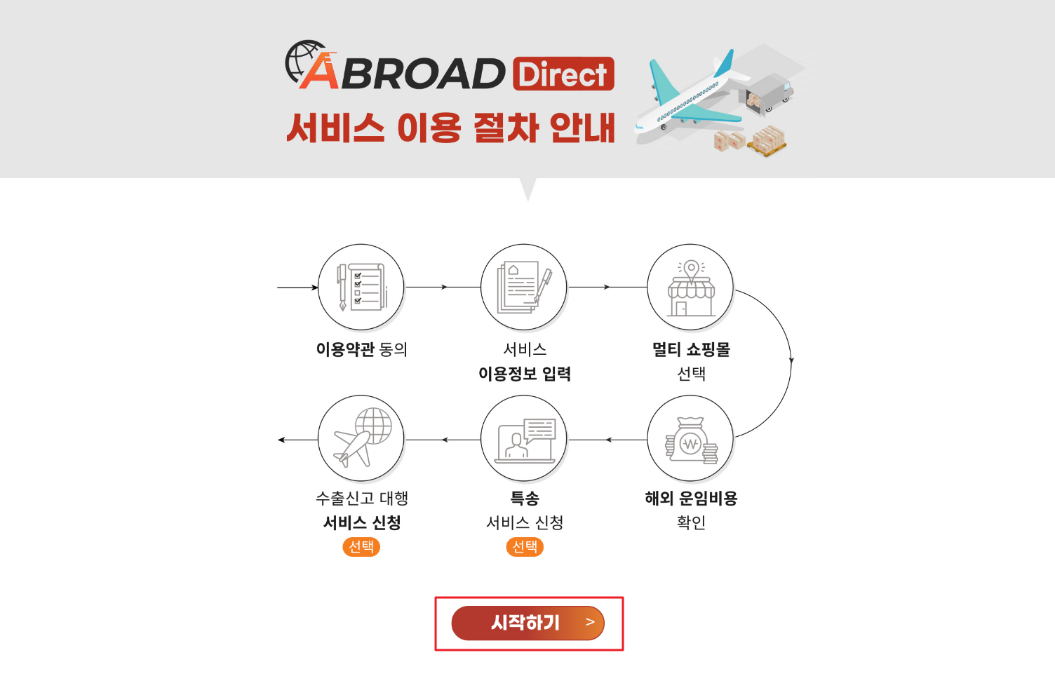 2. 서비스 이용 절차 안내를 확인해 주시고, 시작하기 버튼을 클릭해 주세요.