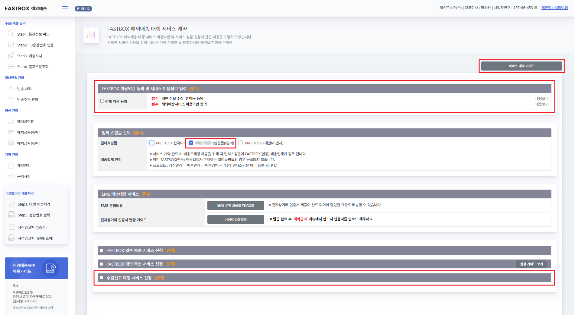 3. FASTBOX 해외배송 대행 서비스 계약을 완료해 주세요.
