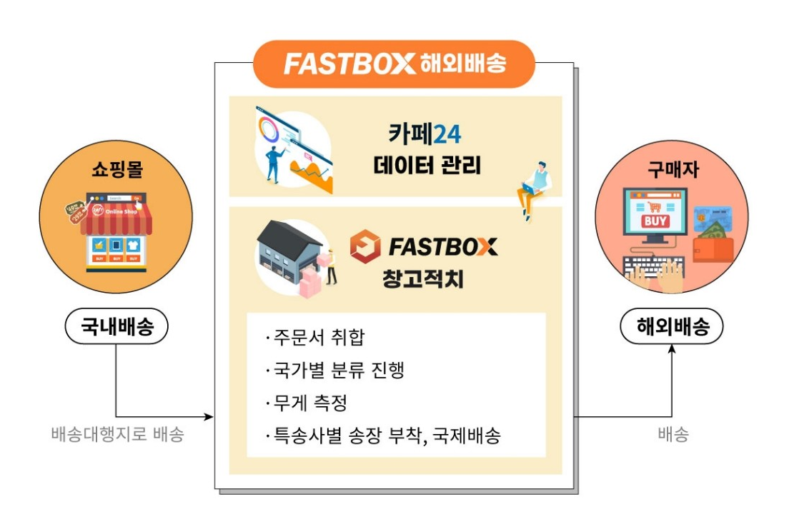 통관 정보는 카페24 PRO가 자동 연동하고, 수출신고·국제운송·통관은 FASTBOX가 자동 처리합니다.