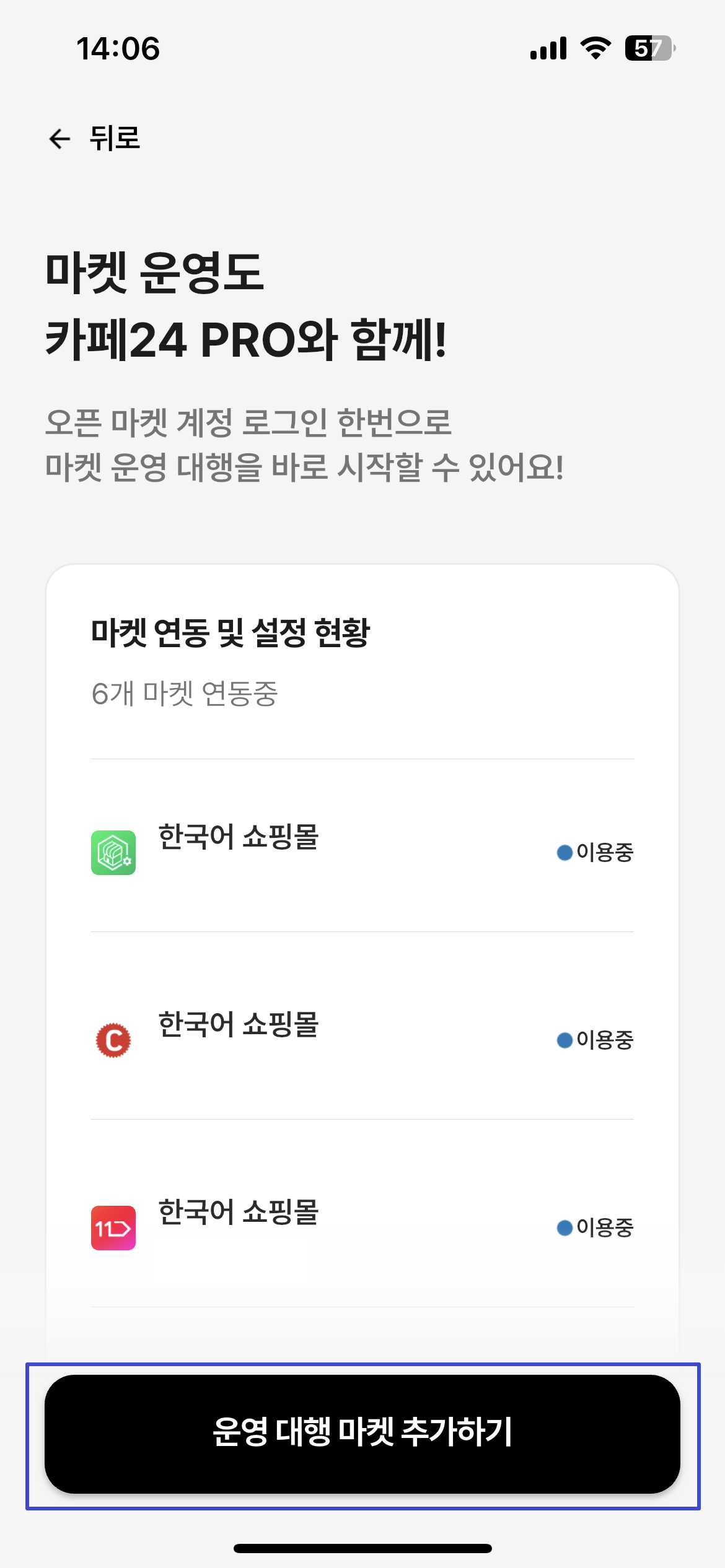 운영 대행 마켓 추가하기 버튼 클릭
