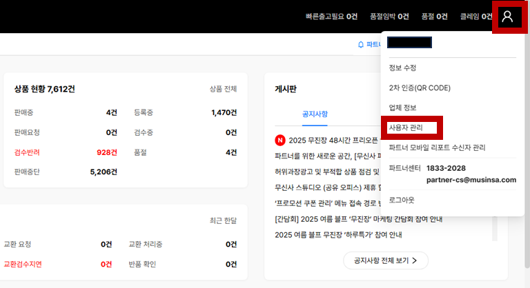 [무신사 포털 > 마이 페이지 > 사용자 관리] 로 이동합니다.