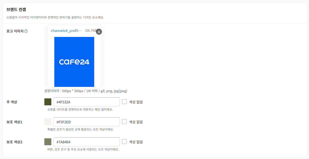 설정된 정보는 쇼핑몰의 시각적인 아이덴티티와 전체적인 브랜드 분위기를 결정하는데 활용됩니다.