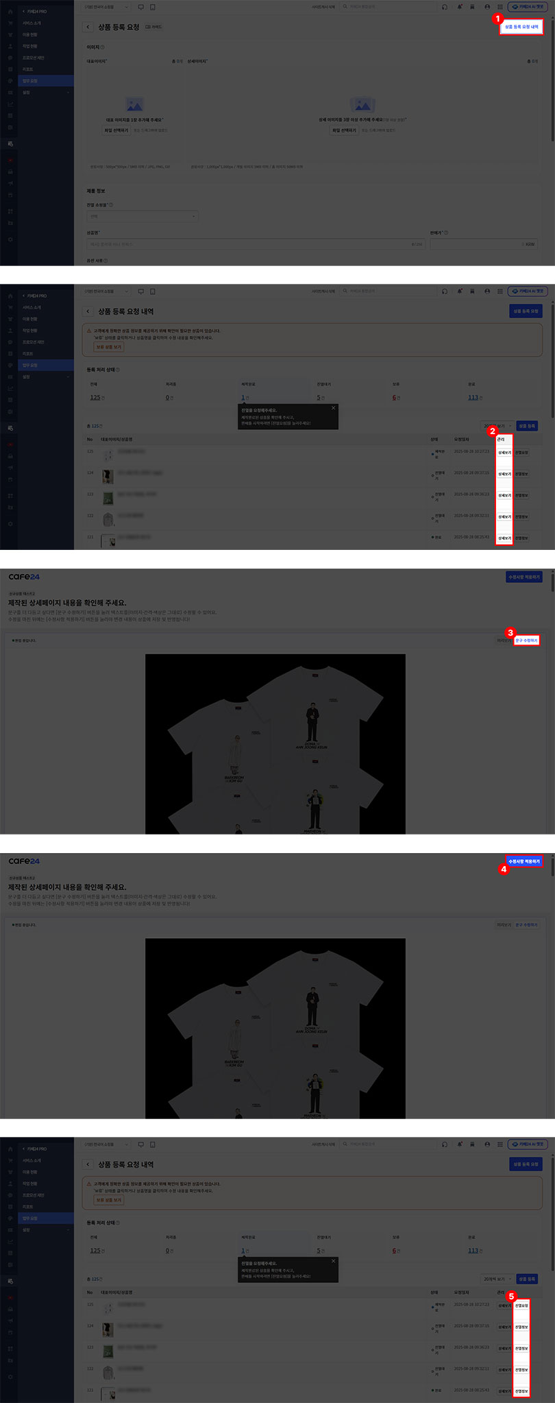 진열 요청 : 수정이 완료된 상품을 진열 요청하여 쇼핑몰에 노출되도록 합니다.