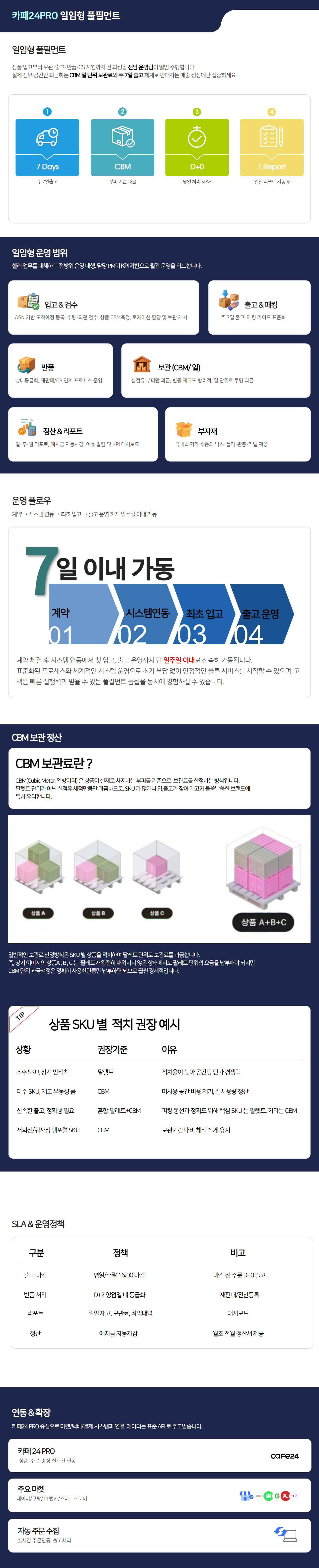 카페24 PRO 전용 풀필먼트 서비스의 개요, 운영 범위, 이용 정책 등 필수 정보 확인