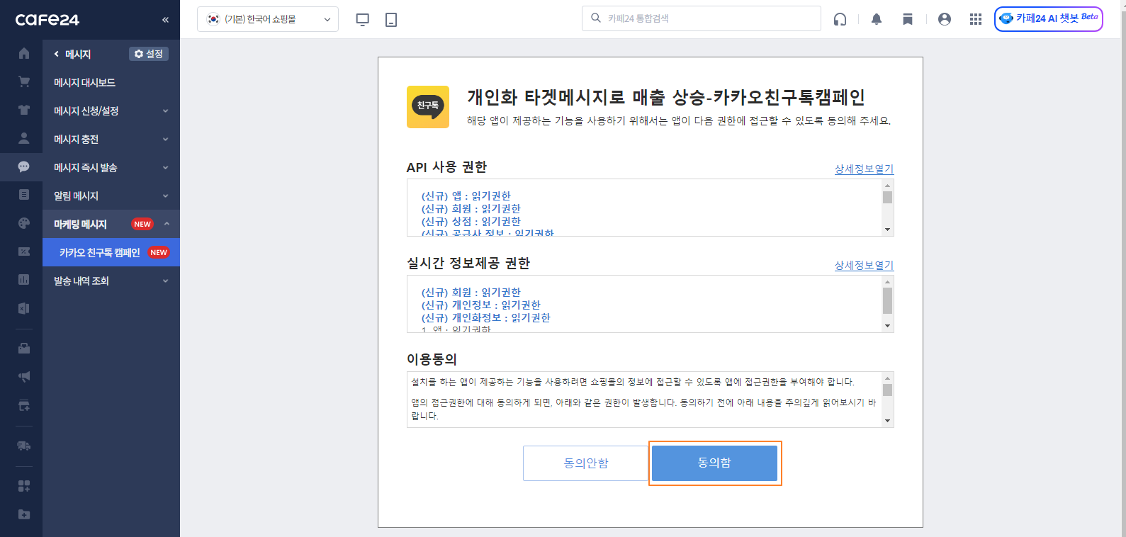동의함 클릭