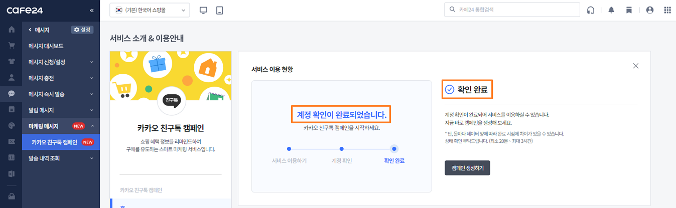 경로 : 메시지 > 마케팅 메시지 > 카카오 친구톡 캠페인