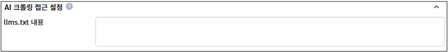 확인 경로: 쇼핑몰 설정 → 기본 설정 → 검색엔진 최적화(SEO) → AI 크롤링 접근 설정