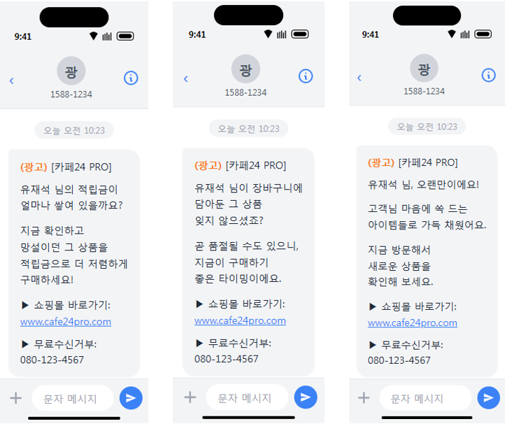SMS๋ก ๊ด๊ณ ๋ฉ์์ง ๋ฐ์ก์ ์ํด 080 ๋ฌด๋ฃ์์ ๊ฑฐ๋ถ ๋ฒํธ ๋ฑ๋ก์ด ๋ฐ๋์ ํ์ํด์