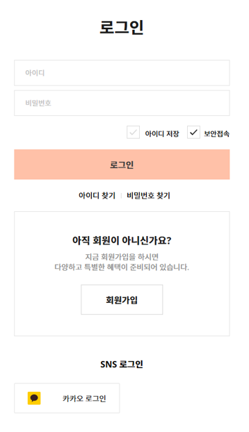 ํ์๊ฐ์ ํ๋จ์ โ์นด์นด์ค ๋ก๊ทธ์ธโ ๋ฒํผ์ ์์ฑํด๋๋ฆฝ๋๋ค.
