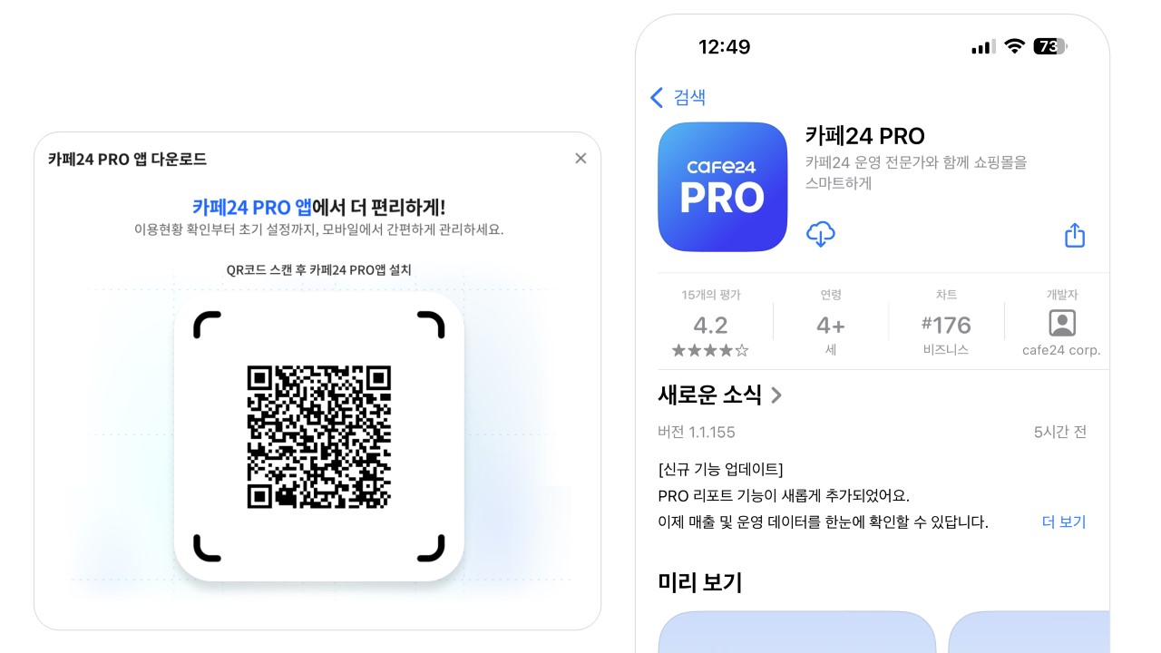 아래의 QR코드 스캔 후 카페24 PRO 앱을 설치해 주세요.
