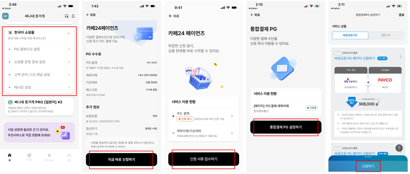 PG 수수료, 추가 정보를 확인한 후, '지금 바로 신청하기' 버튼을 클릭해 주세요. ③ 신청이 완료되면 서비스 이용 현황에서 신청 상태를 확인할 수 있어요.