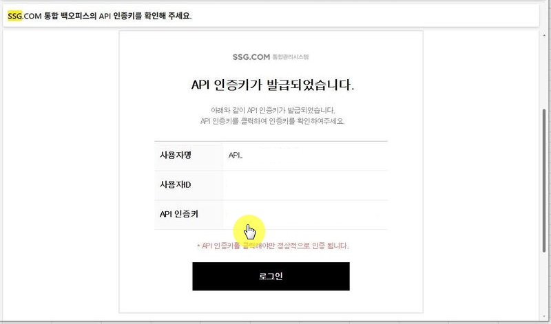 메일 제목 : SSG.COM 통합 백오피스의 API 인증키를 확인해주세요