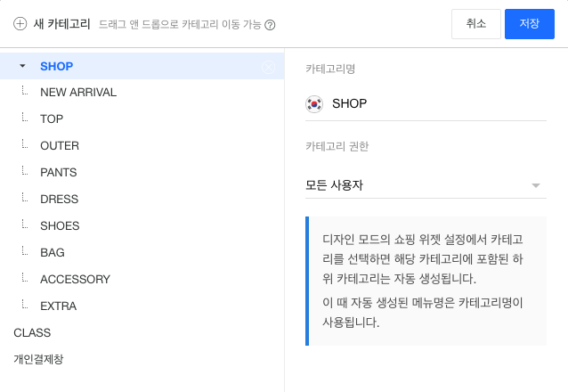 판매 상품을 등록하기에 앞서, 상품 카테고리를 생성하고 구성합니다. 적절한 상품 카테고리는 여러 상품을 더 효율적으로 관리하는 데 도움을 주며, 페이지에 상품을 진열할 때도 유용하게 사용됩니다.