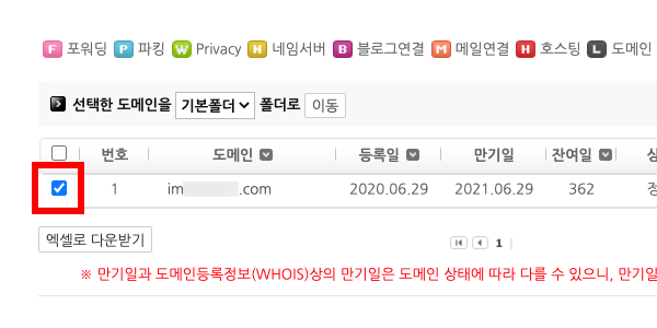 네임서버를 변경할 도메인 주소를 선택합니다.