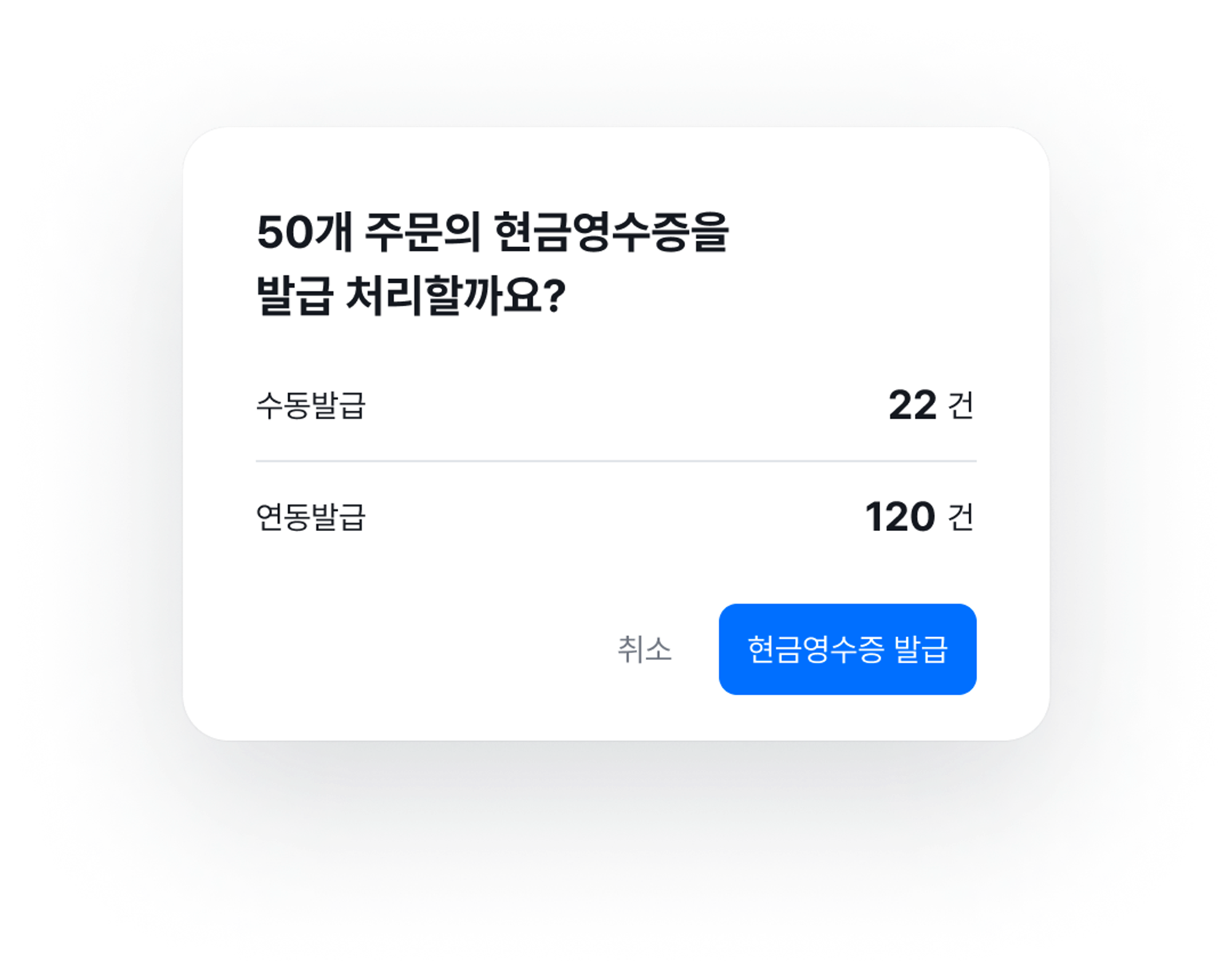 현금영수증 의무발행업종 사업자인데, 구매자가 현금영수증을 신청하지 않았나요? 현금영수증 의무발행 대상 설정을 통해 간편하게 현금영수증 미신청 주문을 확인하고, 국세청 지정 코드를 활용해 현금영수증을 자진해서 발급할 수 있습니다.