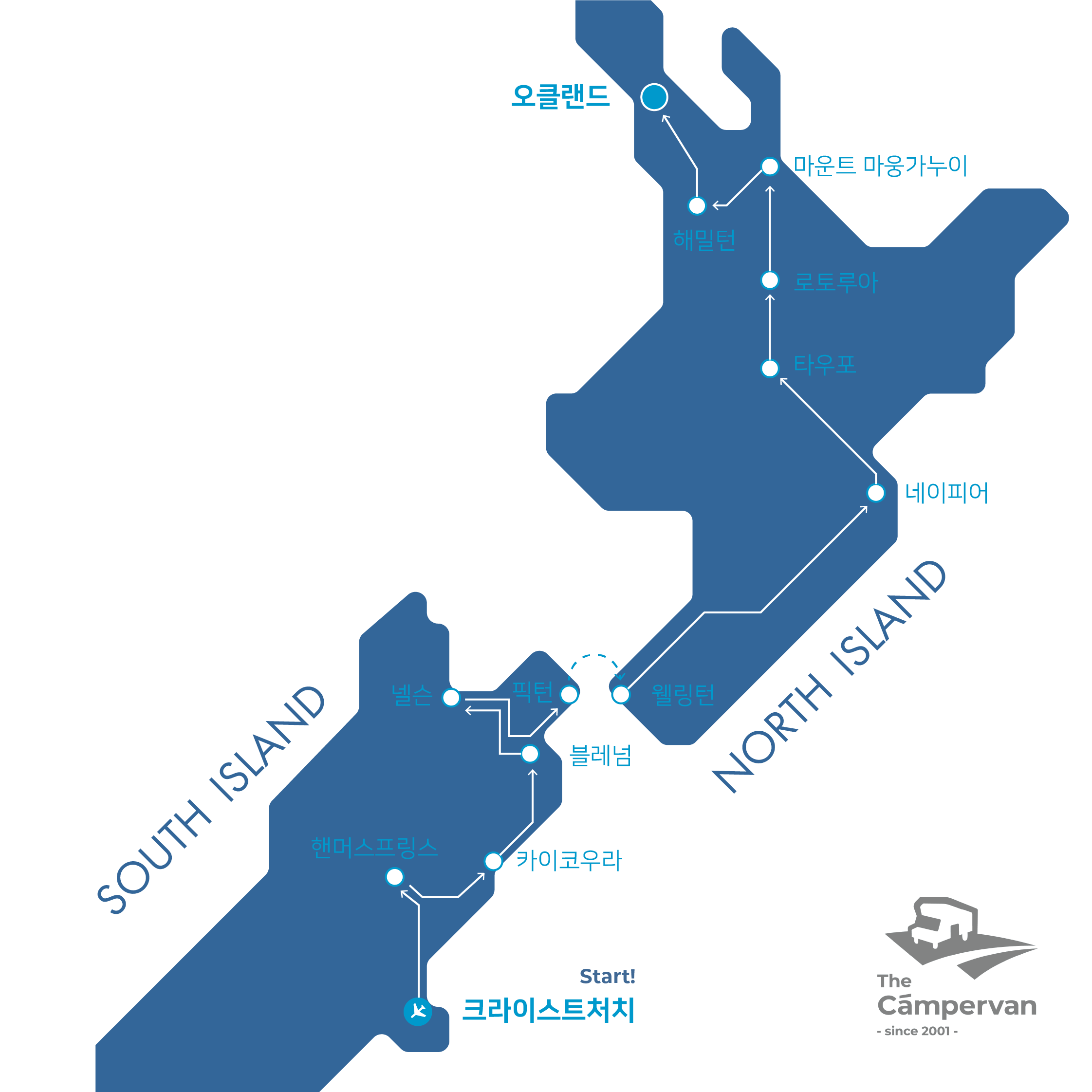 뉴질랜드에서 두 번째로 큰 도시인 크라이스트처치(Christchurch)에서 여행을 시작해, 뉴질랜드에서 가장 번화한 중심지 중 하나인 오클랜드(Auckland)에서 여정을 마무리해 보세요. 아니면 이와 반대로 캠퍼밴을 픽업 및 반납하셔도 좋습니다. 선택은 여러분의 몫이니까요!
