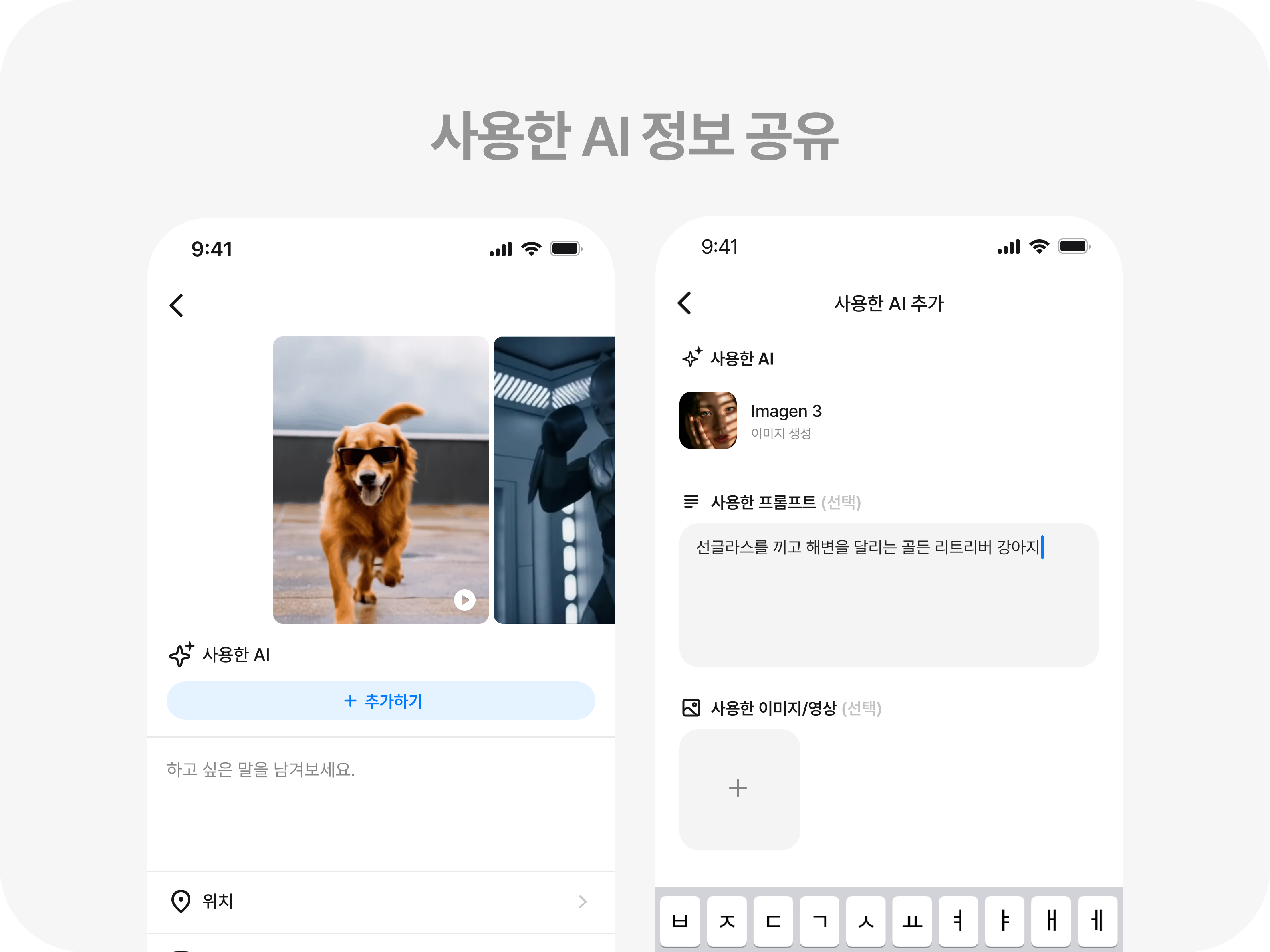 이제 게시물을 올릴 때 사용한 AI 모델과 프롬프트 정보를 함께 공유할 수 있습니다.